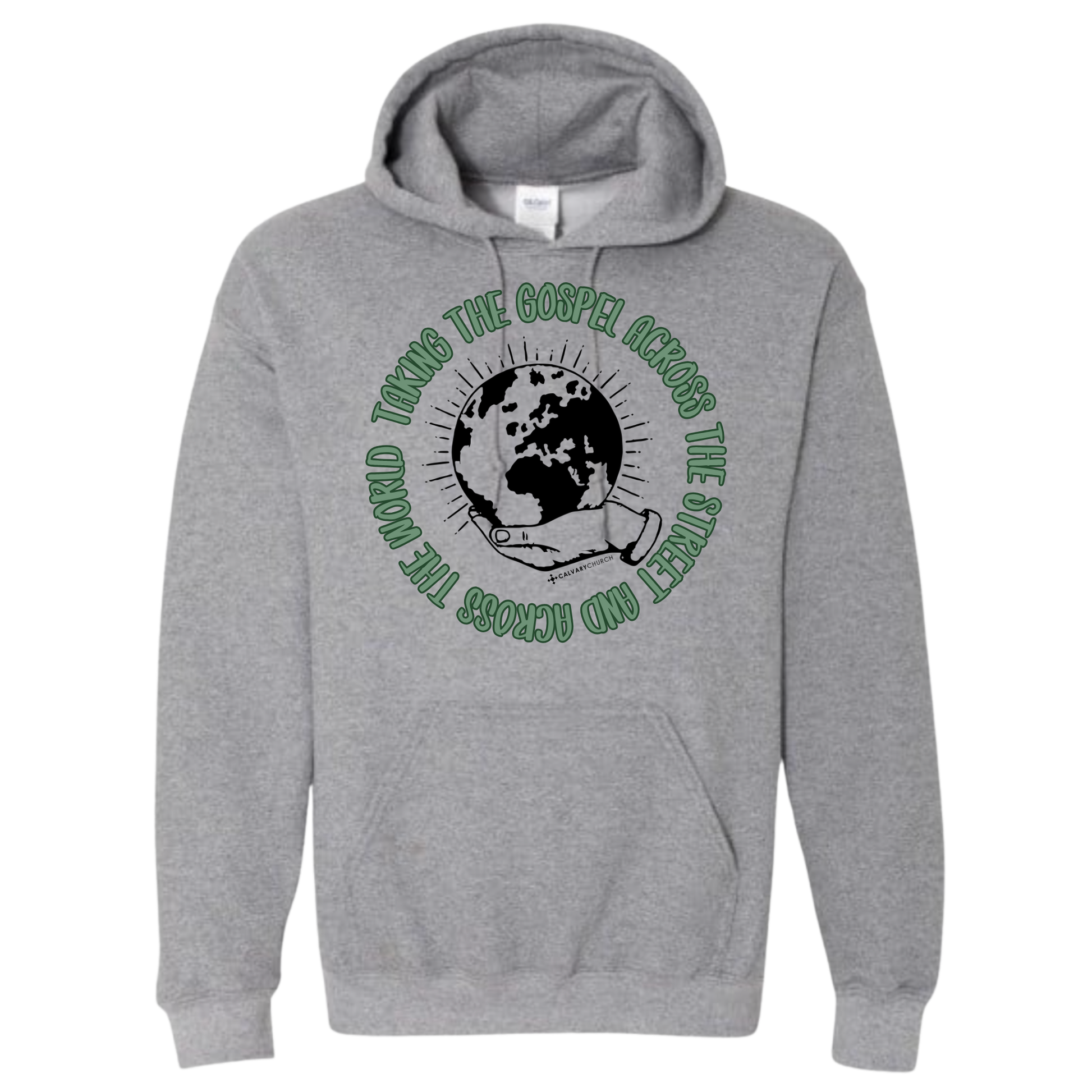 Taking the Gospel- Graphite Heather Hoodie - Green Design