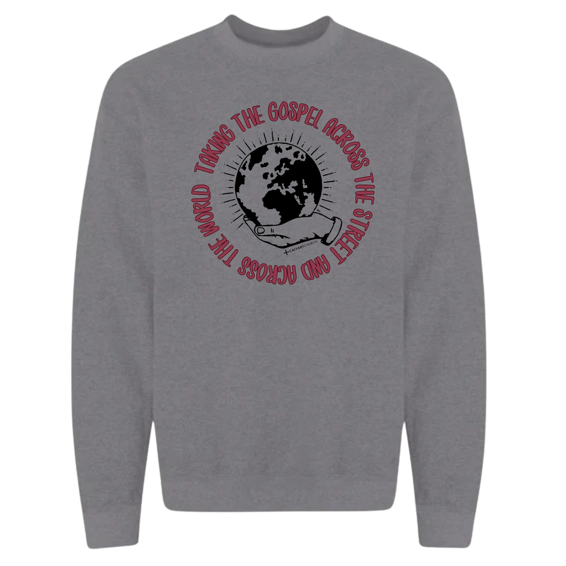 Taking the Gospel- Graphite Heather Sweatshirt - Red Design