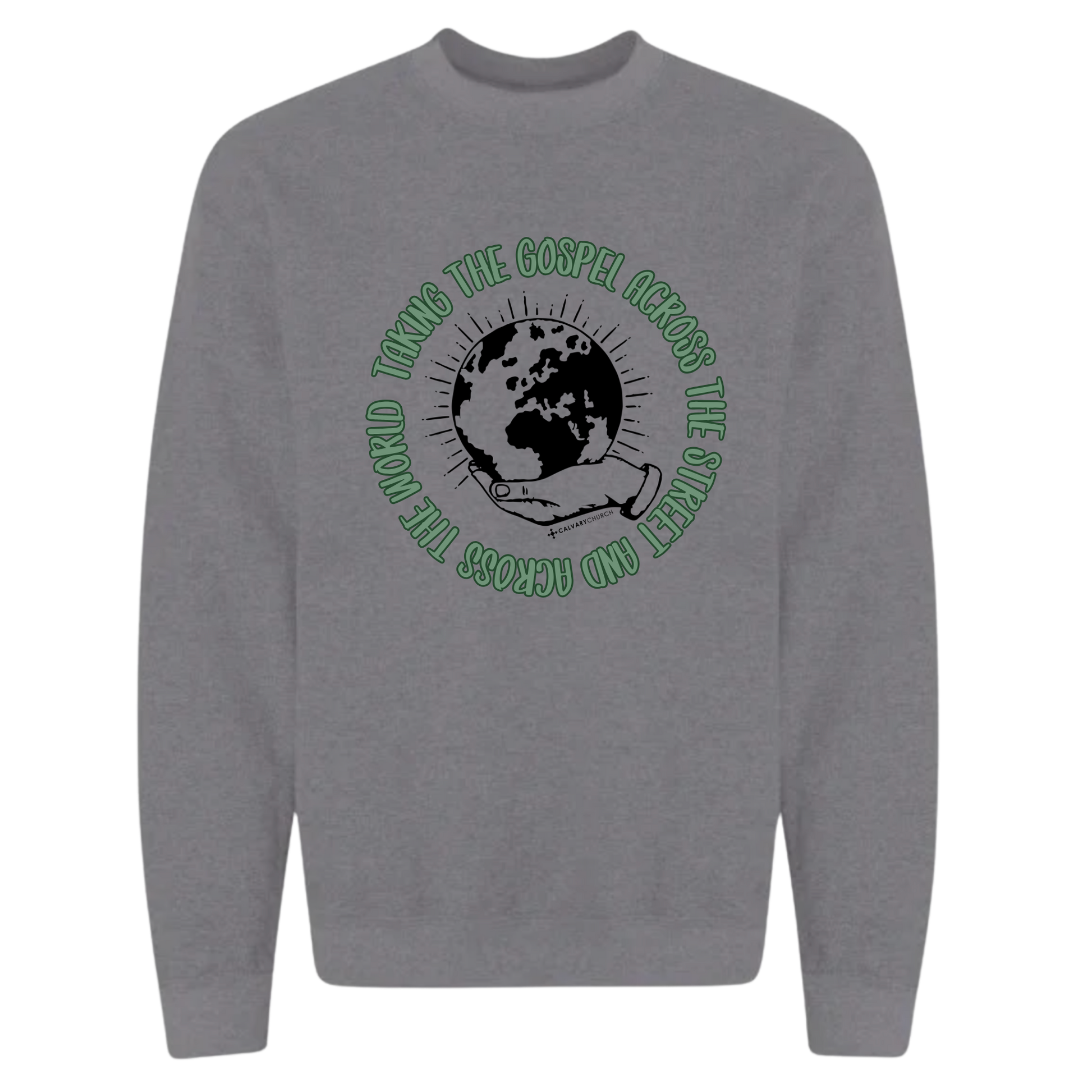 Taking the Gospel- Graphite Heather Sweatshirt - Green Design