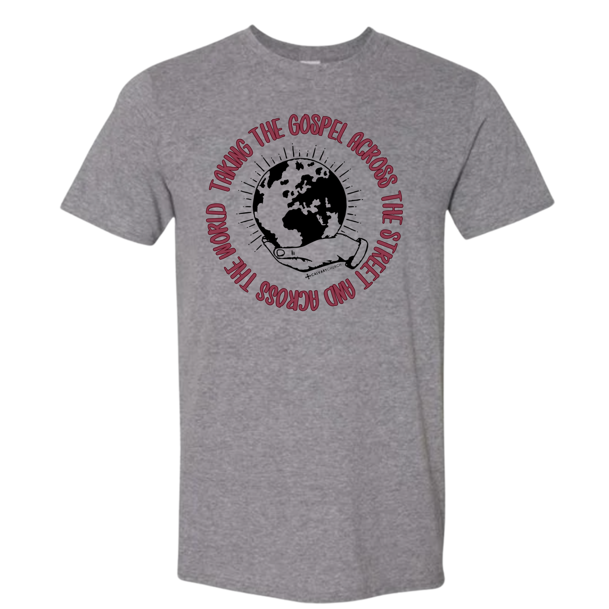 Taking the Gospel- Graphite Heather Gildan Softstyle T-Shirt - Red Design