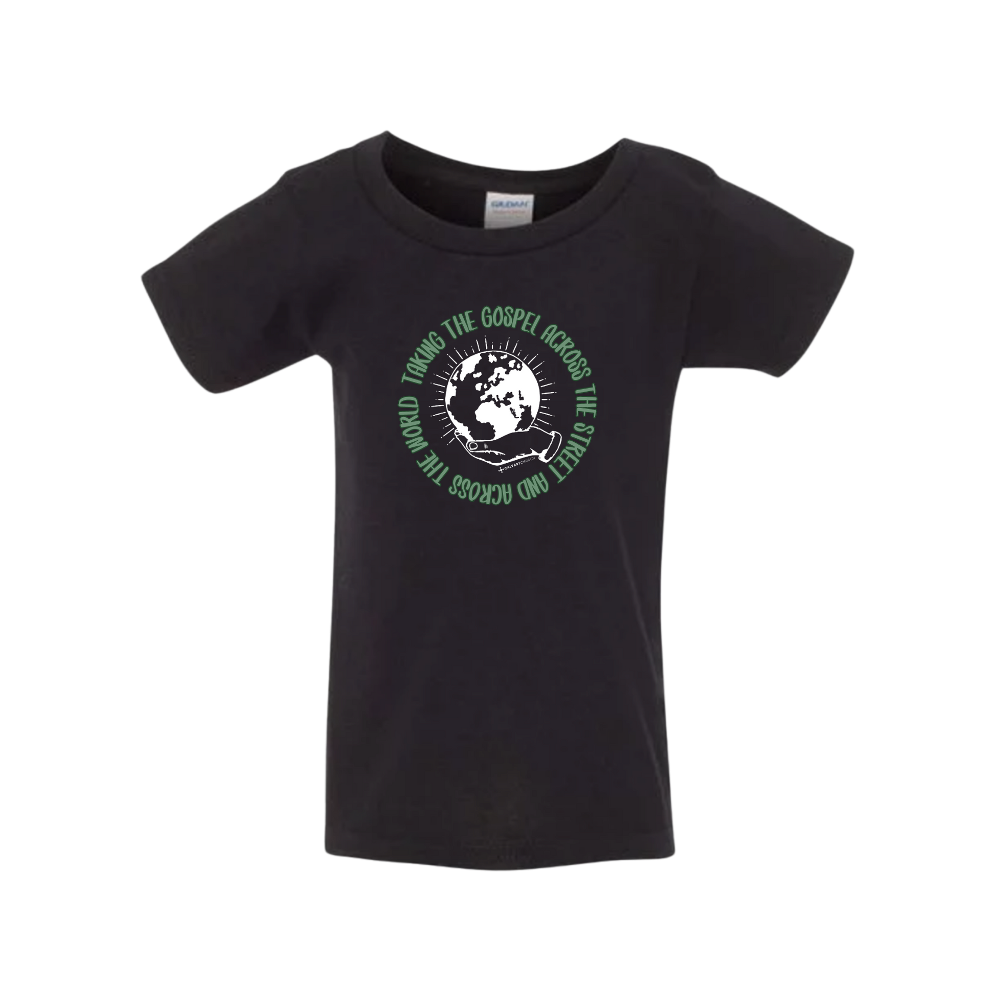 Taking the Gospel- Toddler Black Gildan T-Shirt - Green Design