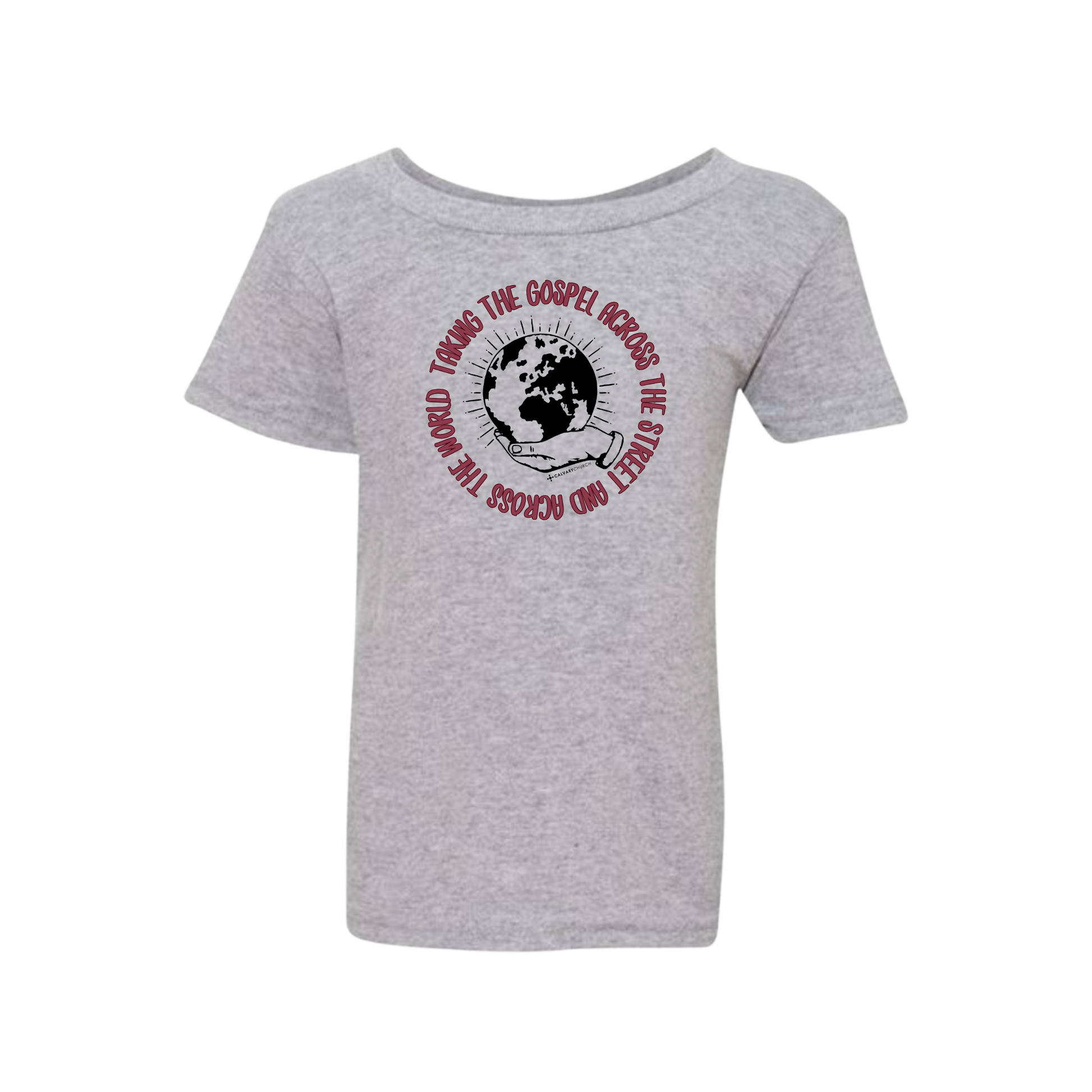 Taking the Gospel- Toddler Sport Gray Gildan T-Shirt - Red Design